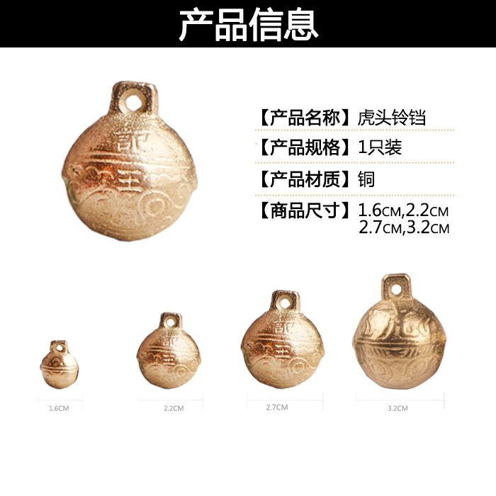 Pet bell tiger head copper bell dog bell pendant cat big dog puppy large dog golden retriever collar necklace bell