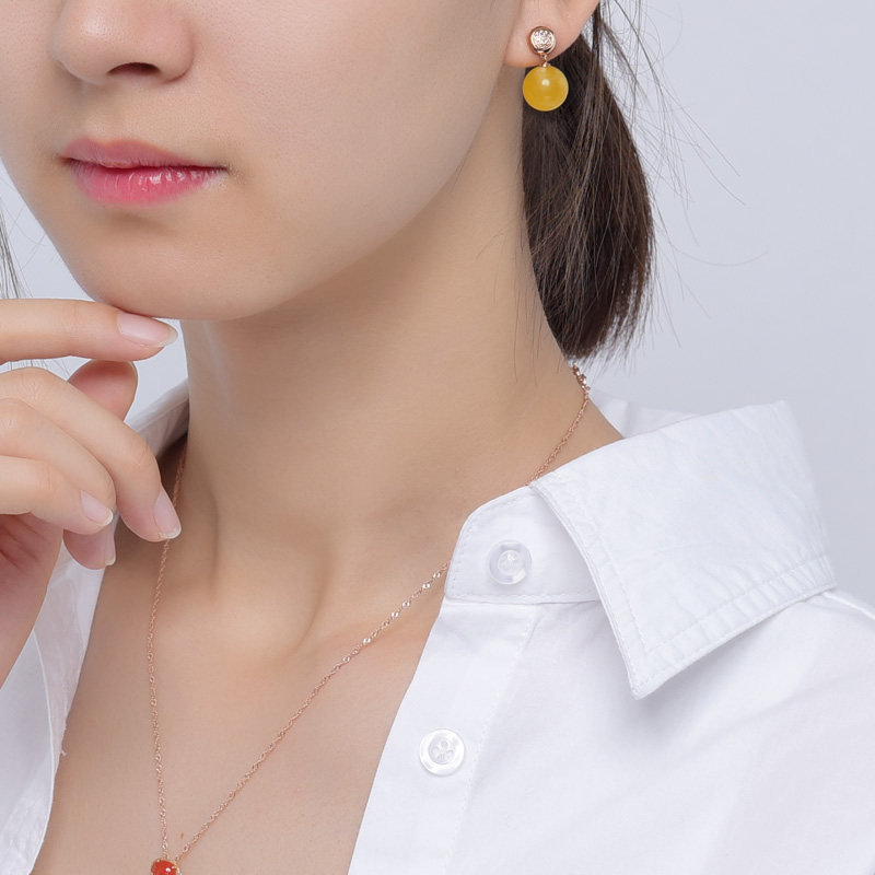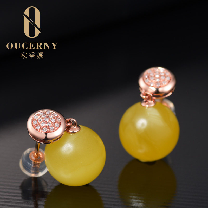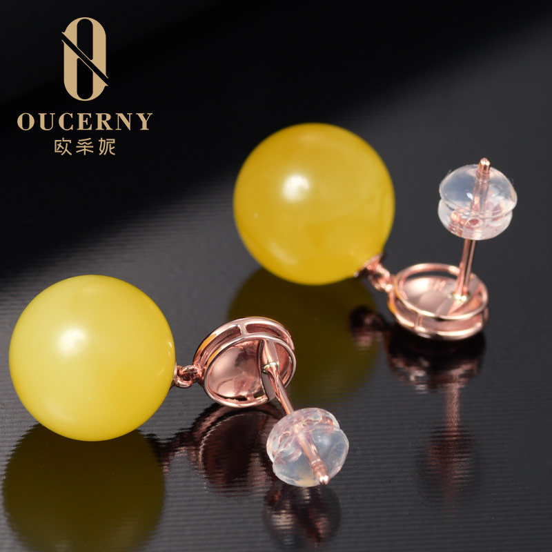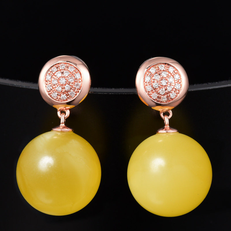 Eugenie natural amber drop earrings 18k gold inlaid chanterelle yellow beeswax earrings full of honey beads earrings for women