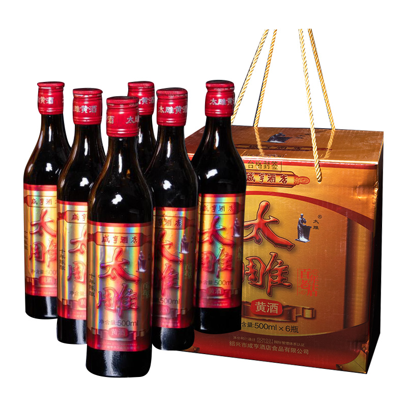 Shaoxing Xianghan Hotel Yellow wine Decade Chen's full bodied and too carved 500ml * 6 bottles of whole box courtesy box sticky rice old wine