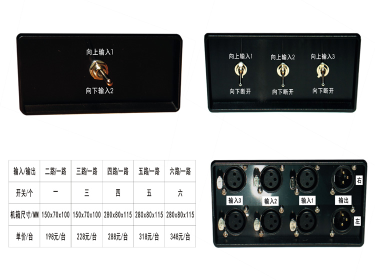 Stereo XLR head two- or three-way audio signal balanced input switches feature gold-plated XLR sockets