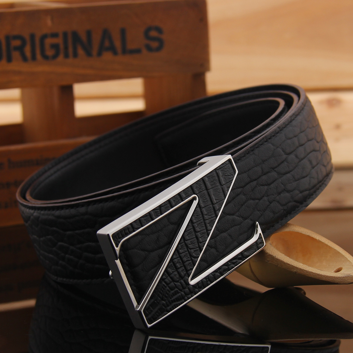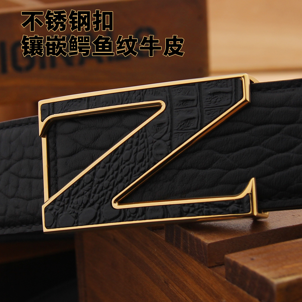 Ailanbao business first layer cowhide men's belt stainless steel Z buckle inlaid crocodile pattern cowhide belt men's Korean version