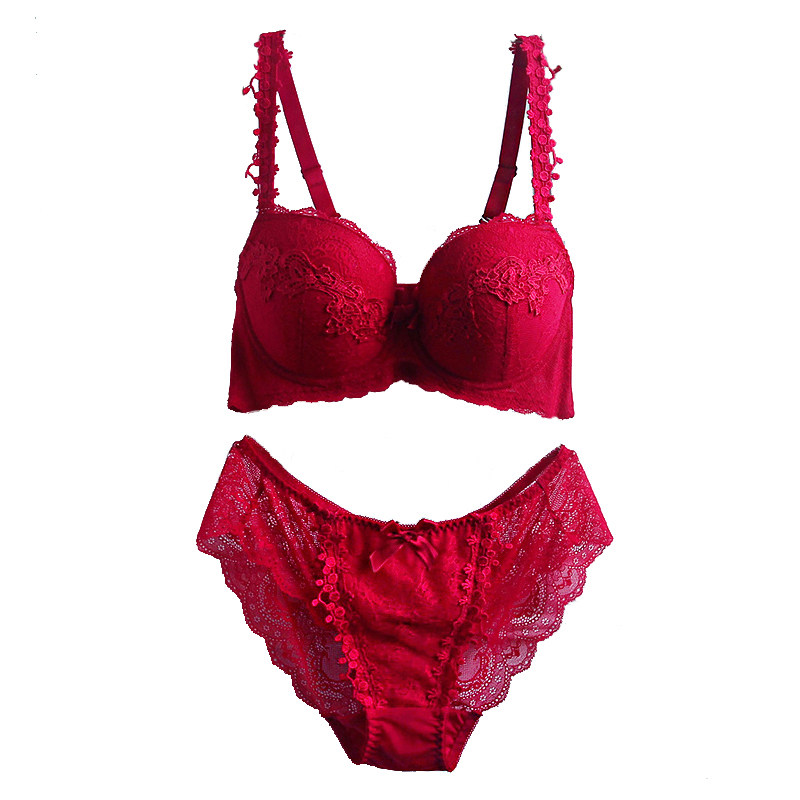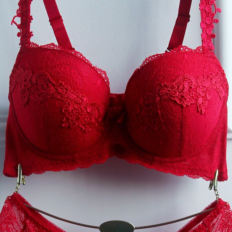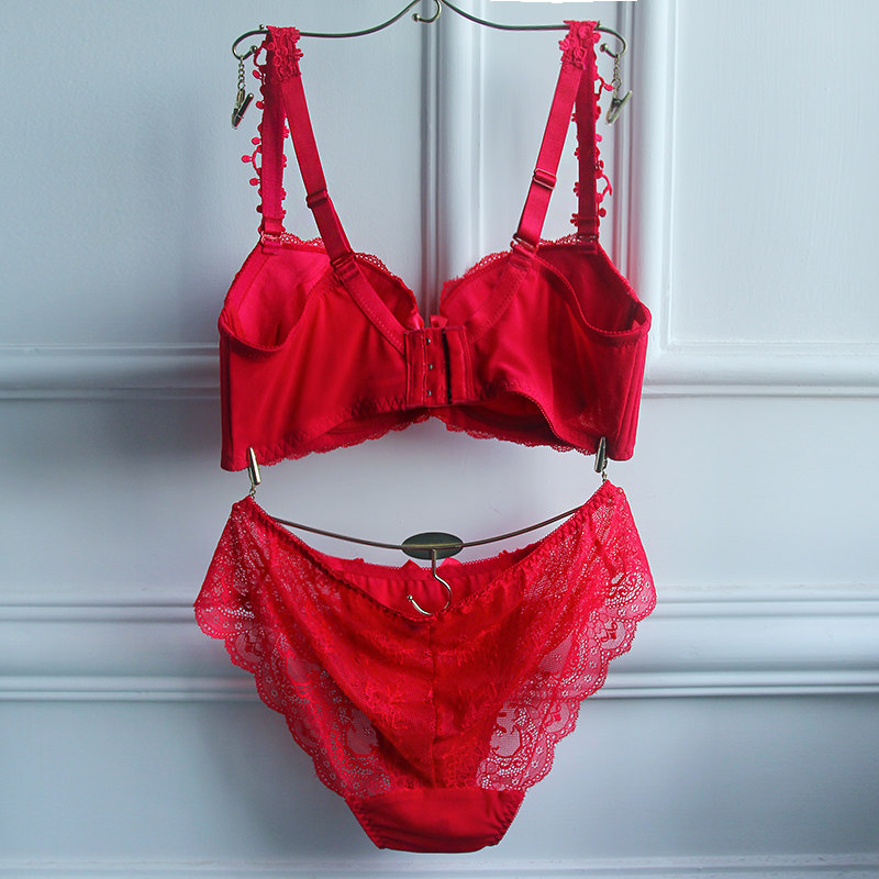 Deep V thin section Coalesch Red Ben Year Big Code Thin bra suit large breasted large code red female lingerie suit-Taobao