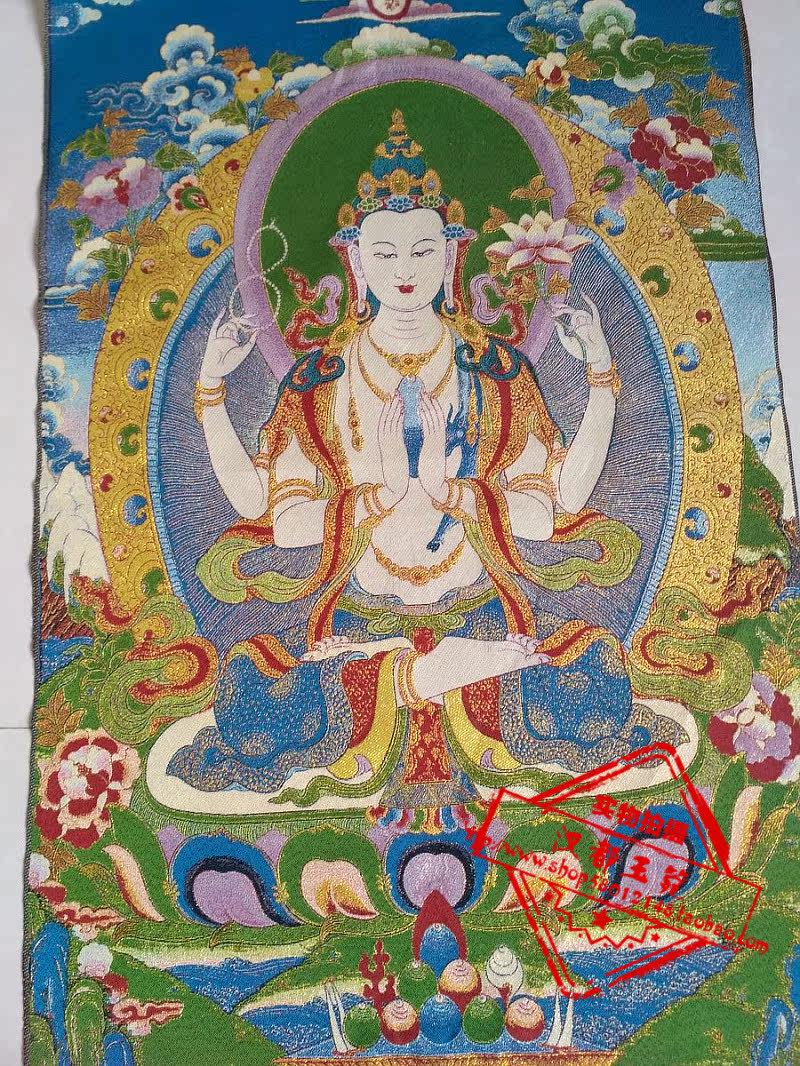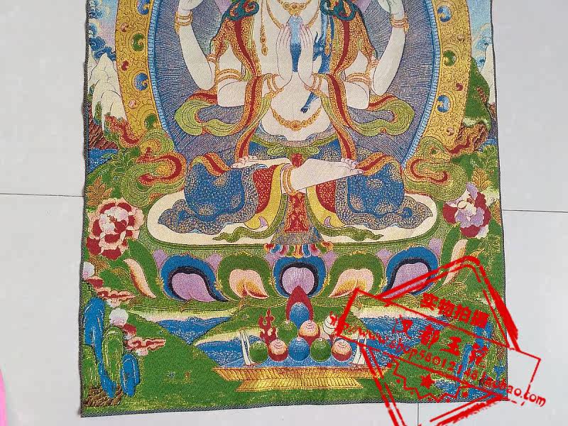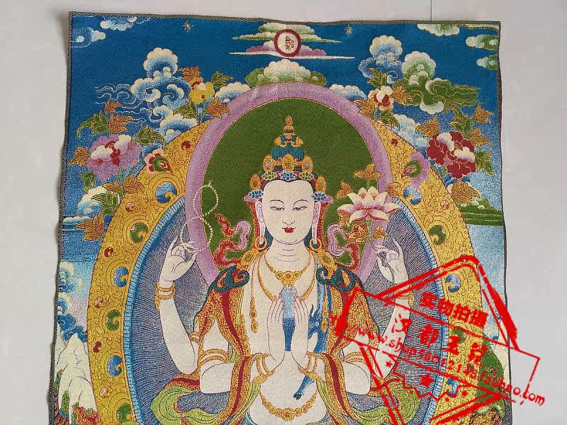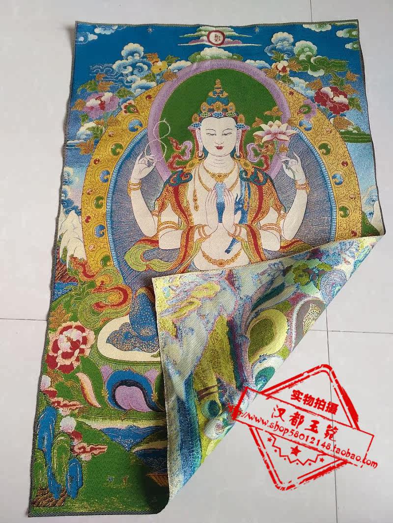 Ancient play Tang kweave embroidered white degree mother like Tang card embroidery Four-arm Guanyin Bodhisattva statue of home decoration painting