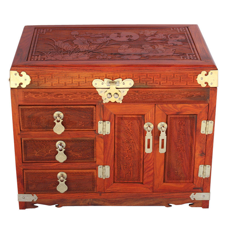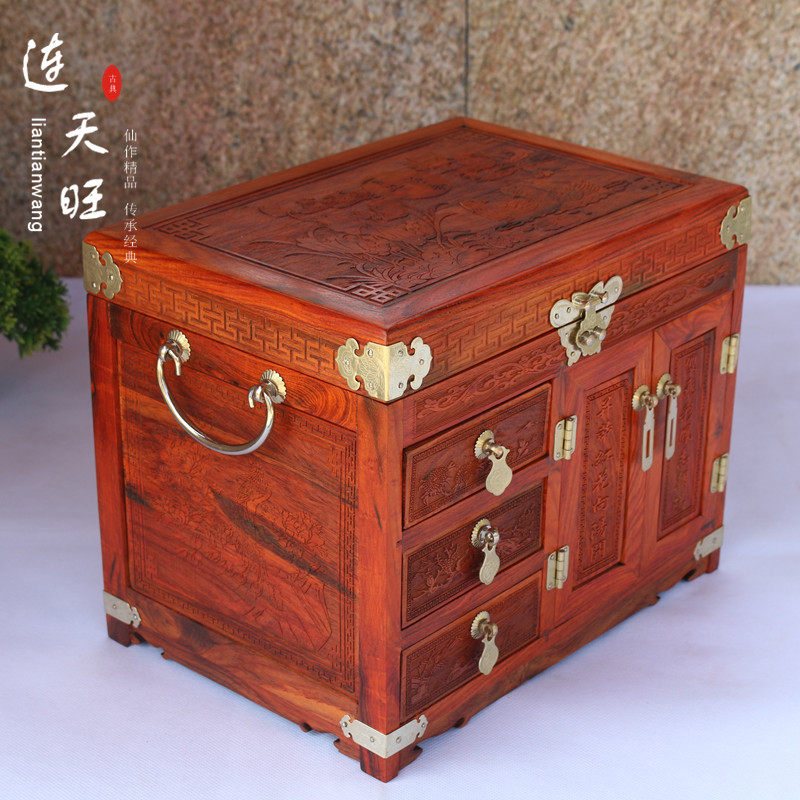 Lao Red Acid Branch Dowry Box Red Wood New Wedding Containing Box Wood Carved Jewelry Box Carved mirror case Red acid branches Branches First Decorated Box