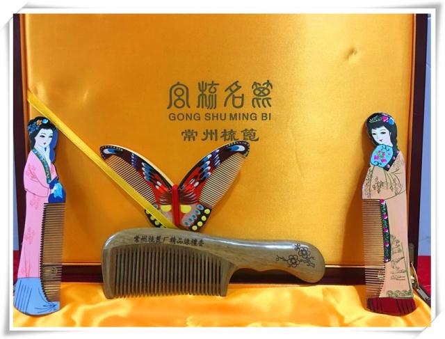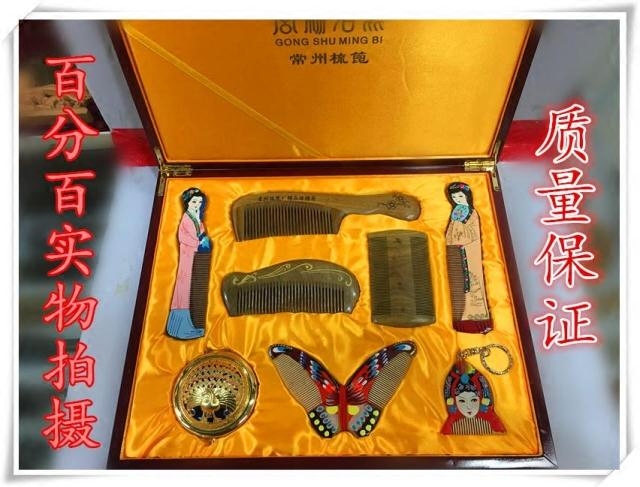 Changzhou Comb Factory Specialty Large Wooden Box Eight-piece Gift Wooden Comb Green Sandalwood Comb Character Butterfly Craft Comb