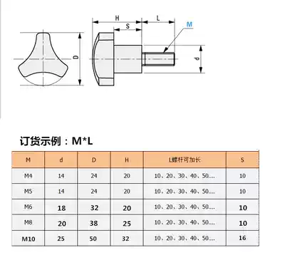 Stainless steel triangle handle screw glue thumb screws M6 M8 * 10 15 20 25 30 35 40 50