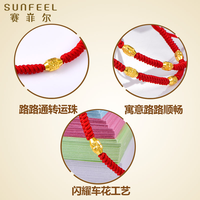 Saifeier Gold Foot Gold 999 9 Olive Bead Hand Sculpture Women's Red Hand Rope Six Six Great Shun Transfer Bead Ring Women