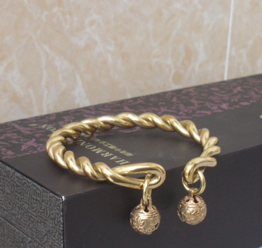 Twist Brass Bracelet Copper Bracelet Bell Pendant Pure Hand Crafted Brass Bracelet