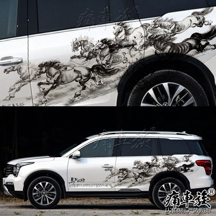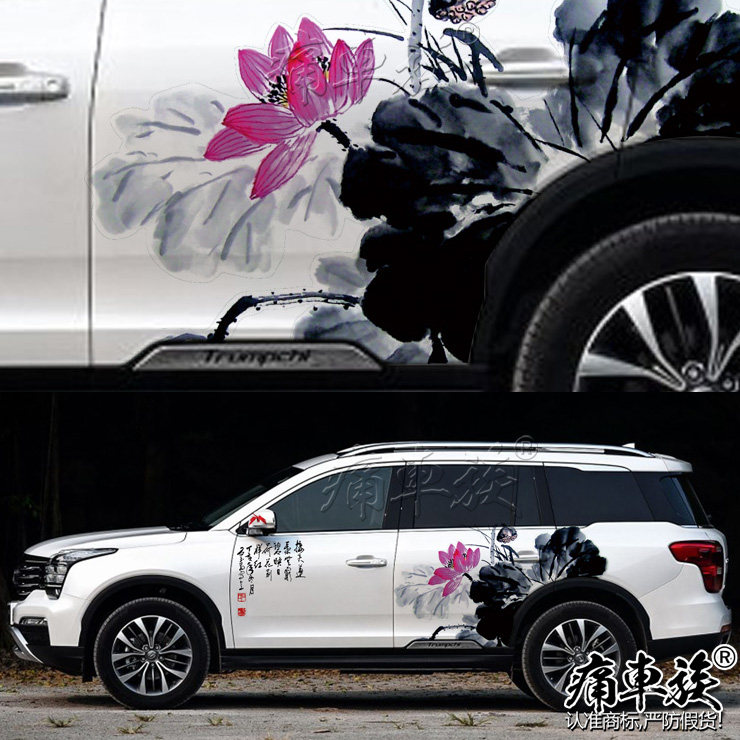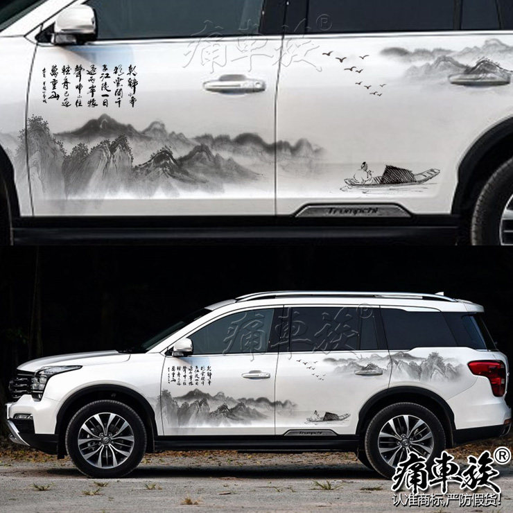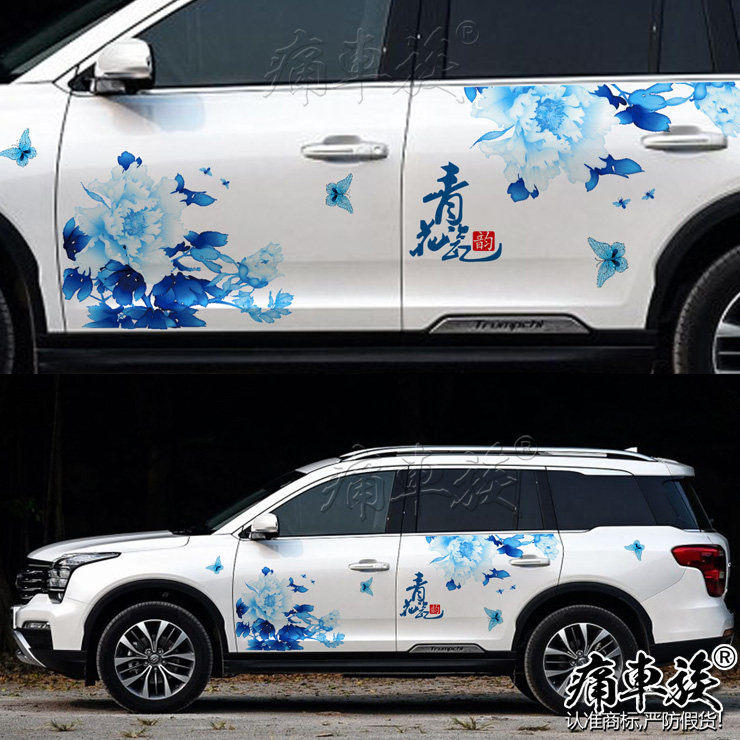 Trumpchi GS8 car sticker pull flower Chinese ink painting landscape painting blue and white porcelain decoration modified car sticker Roewe RX5