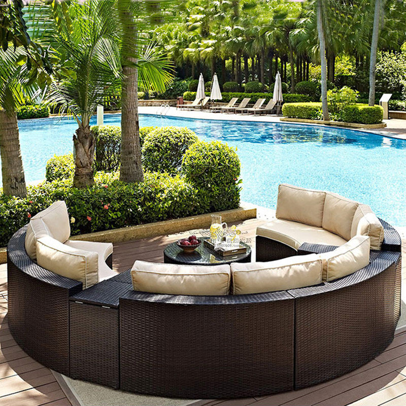 Creative Rattan Sofa Combination Balcony Leisure Curved Sofa Hotel Club Reception Reception Bed Outdoor Sofa