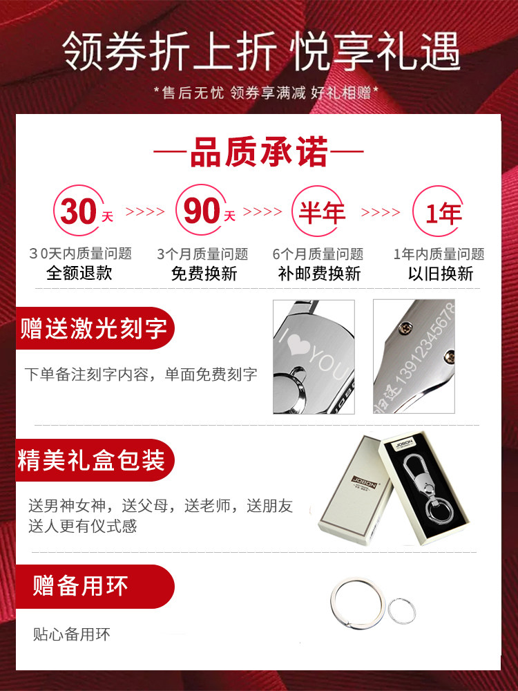 Silver car horseshoe buckle (free one-sided lettering) Send multiple spare key rings