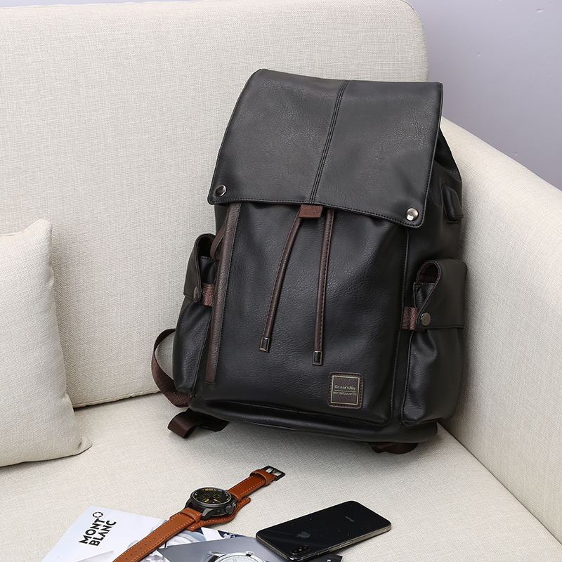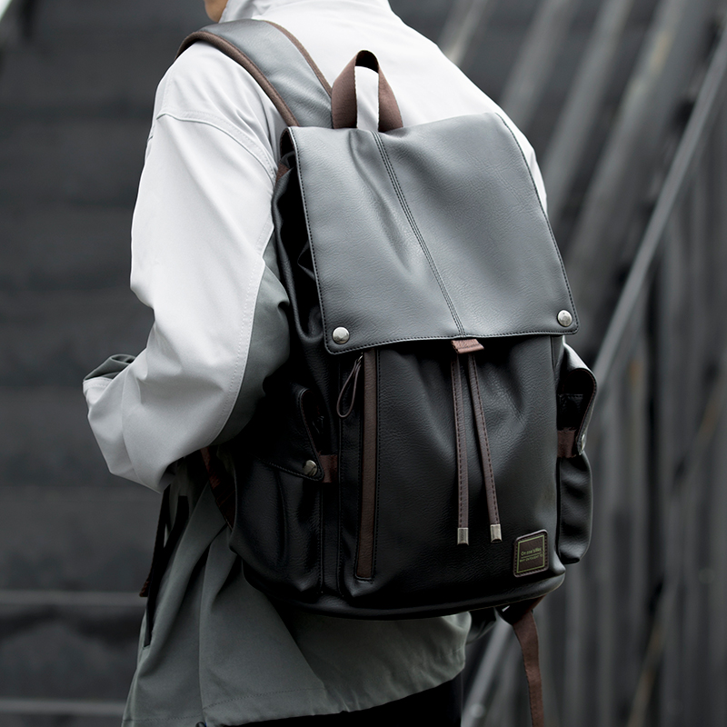 Leather casual backpack men's shoulder bag fashion trend college school bag large capacity travel bag computer bag men's bag