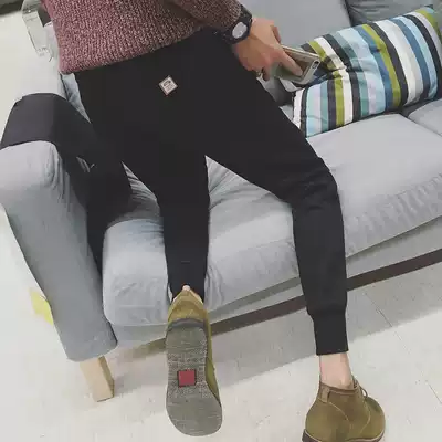 Spring pants men's Korean version of the trend slim-fit sweatpants wild small feet casual thick cotton pants drawstring pants black trousers