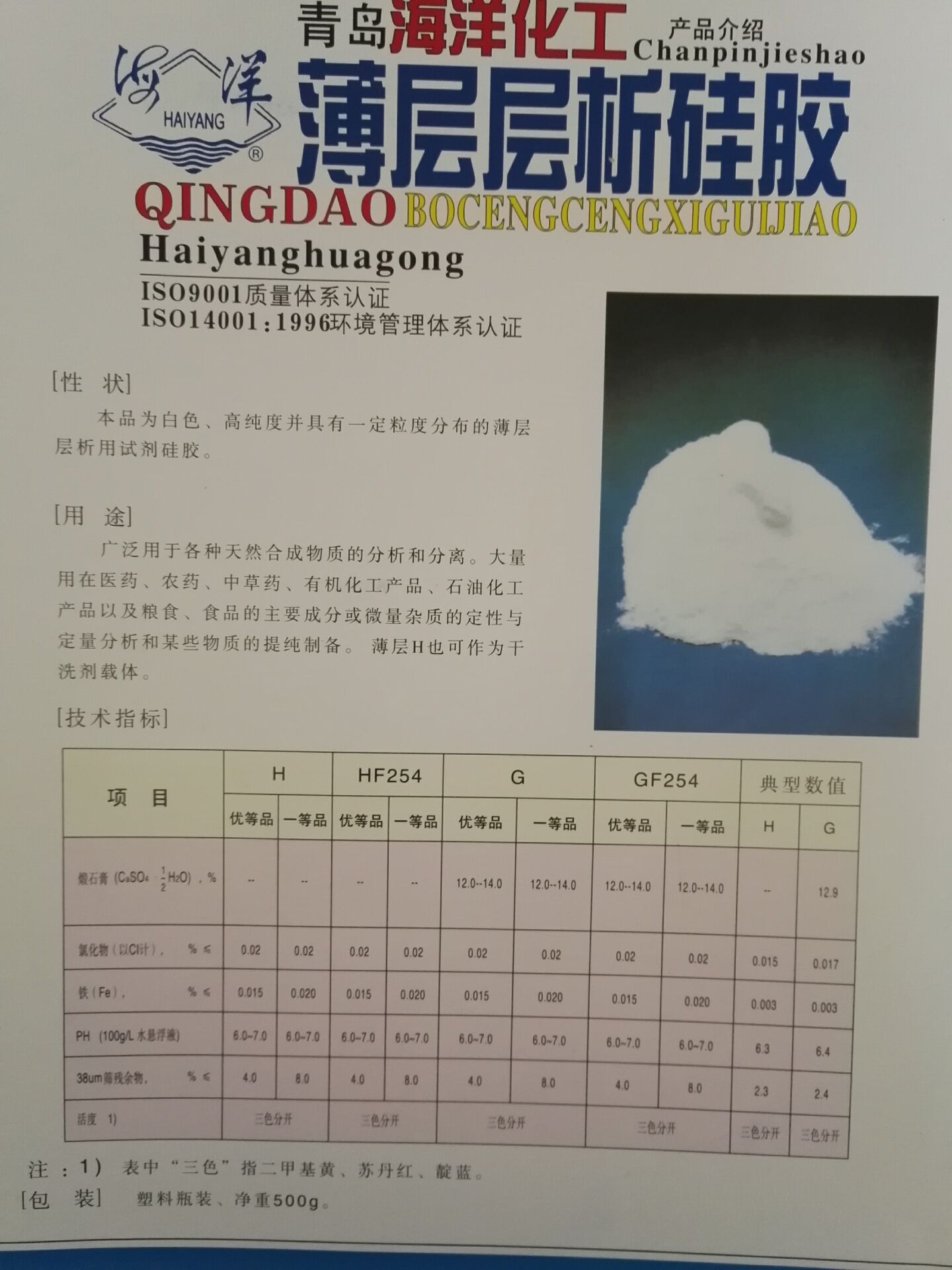 Qingdao marine thin-layer chromatography silica gel powder H powder 500g thin-layer silica gel powder H can be invoiced thin-layer silica gel