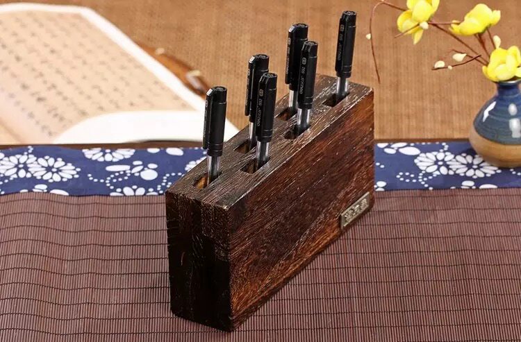 Japan-style solid wood inserts pen holder desktop stationery containing box creative pen holder retro pen holder wood rectangular pen insert