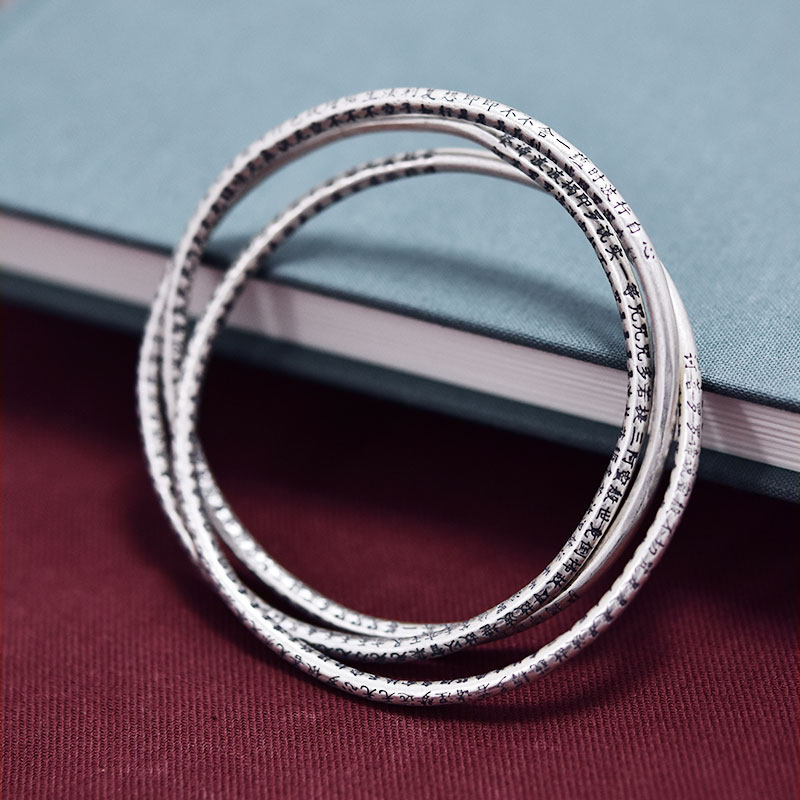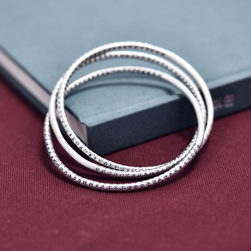 Heart Sutra bracelet for women Sterling silver multi-ring lettering handmade vintage craft fashion wild bracelet for girls gift silver jewelry