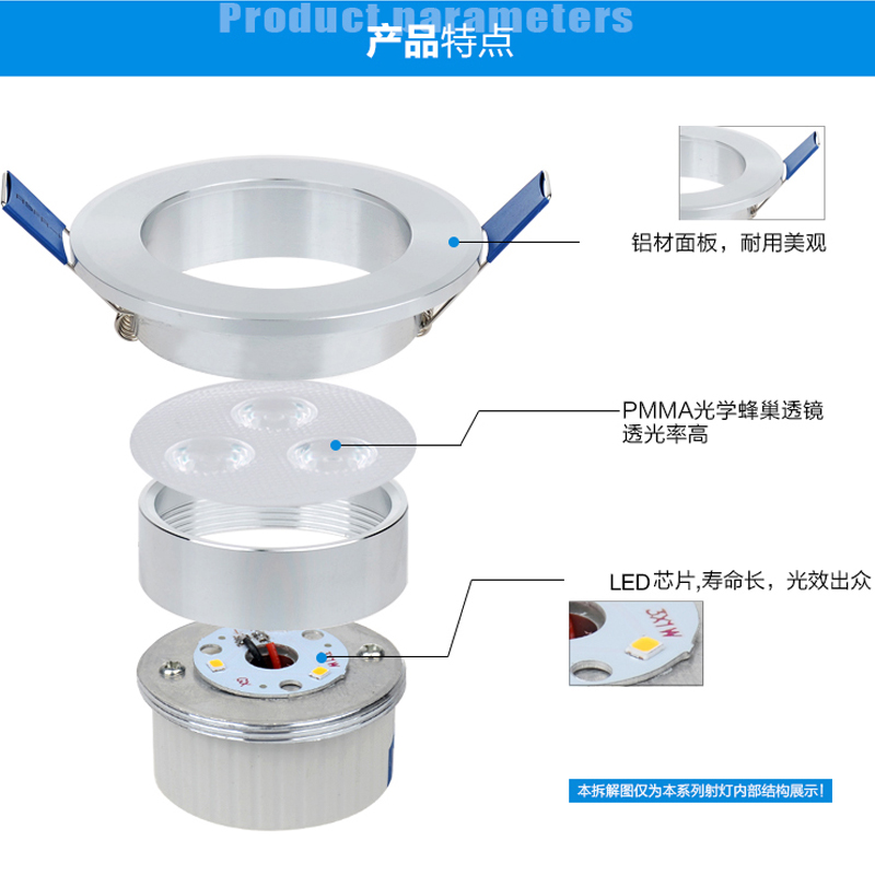 LED spotlight 3W small ceiling spotlight aisle ceiling light living room background wall embedded bull's eye lamp