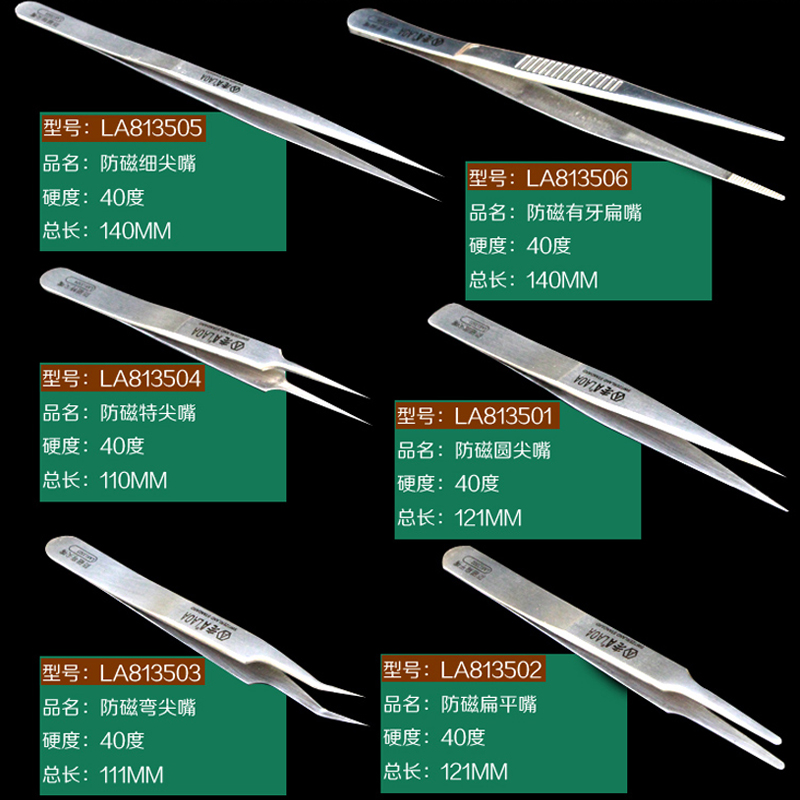 Anti-magnetic round tip LA813501 anti-magnetic flat mouth LA813502 anti-magnetic bending tip LA813503 anti-magnetic special tip mouth LA813504 anti-magnetic fine tip mouth LA8
