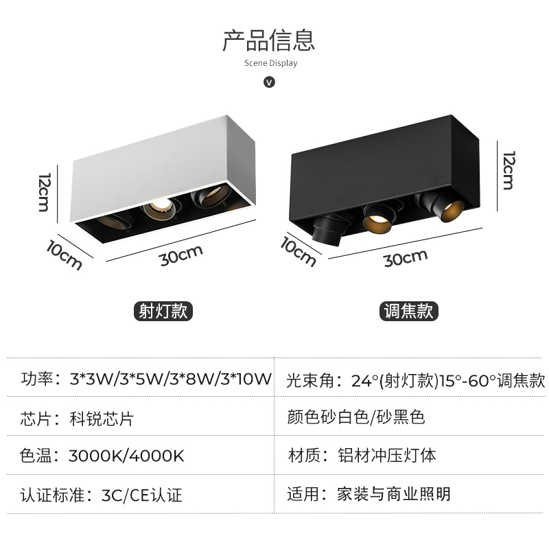 Empty frame (order note color) Black and white-3*3W-warm light 3000K Black and white-3*5W-warm light 3000K Black and white-3*5W-Neutral light 4000K