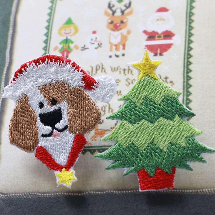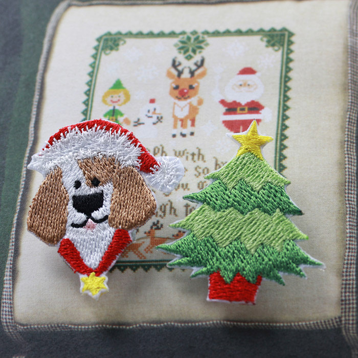 Christmas Tree Christmas Dog Featured Embroidery Decoration DIY cloth adhesive clothing applier with cloth art Christmas elements accessories
