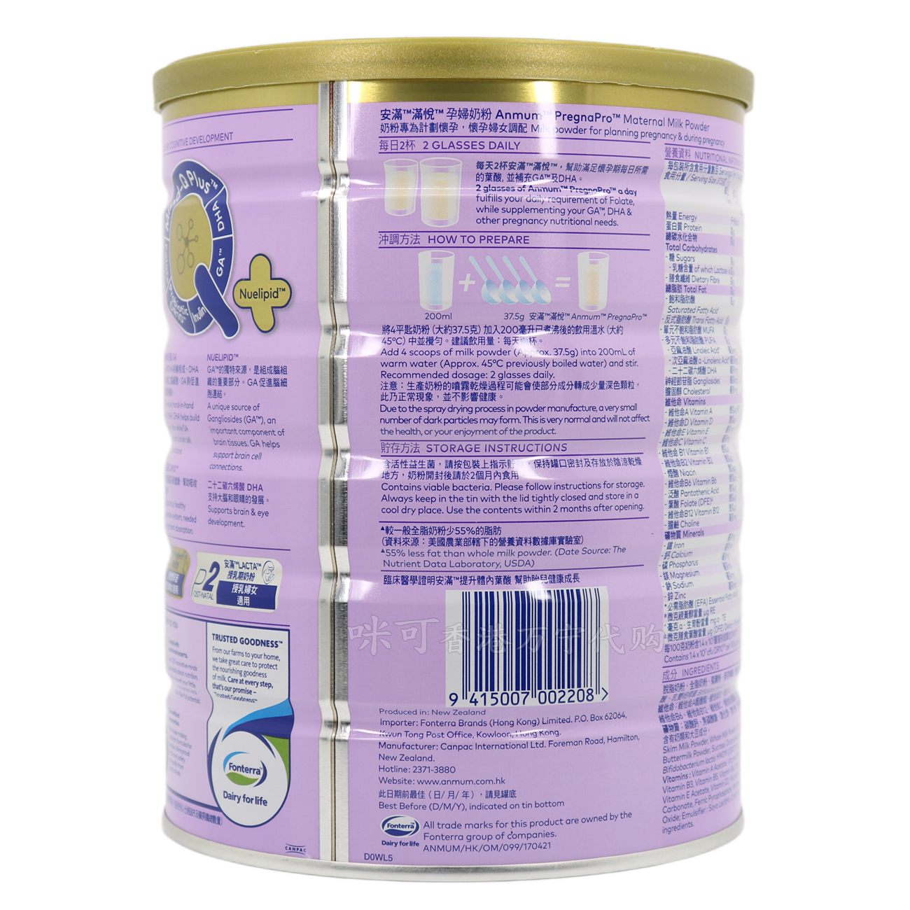 Hong Kong's Wanning Hong Kong version of pregnant women's milk powder 800g grams of pregnancy early pregnancy mid-pregnancy