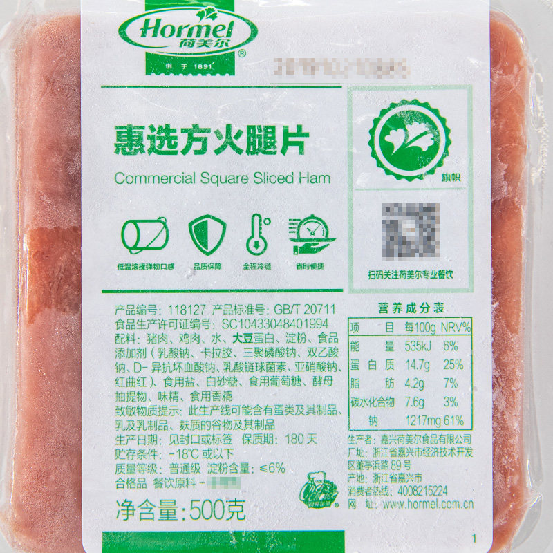 Hormel Hormel Hormel square ham 500g sandwich Fire leg Pizza Sandwich Salad with fire leg sheet