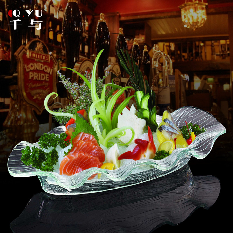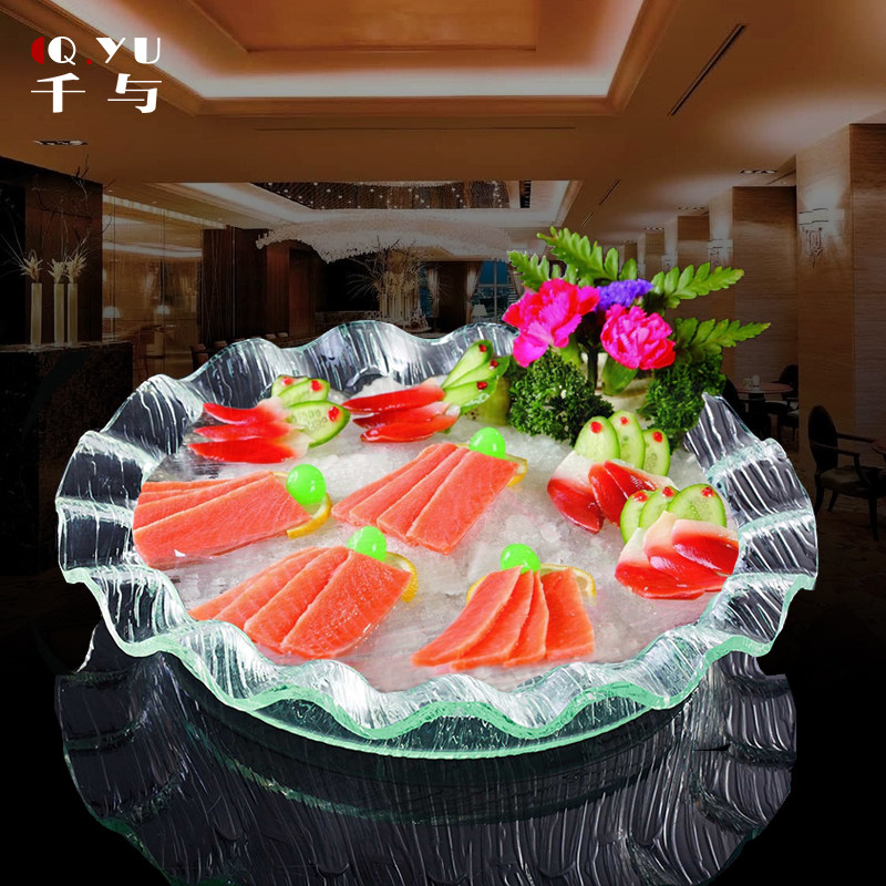 Creative Sashimi Disc Parquet Plate Salmon Sashimi Ice Pan Fire Pan Shop Cutlery Dry Ice Pan Day Cutlery Seafood