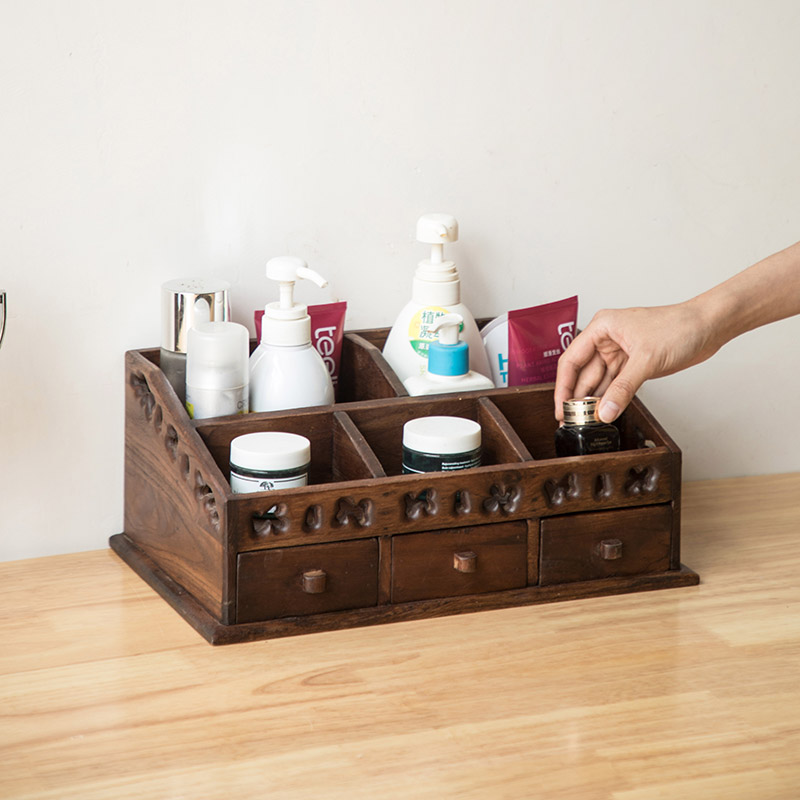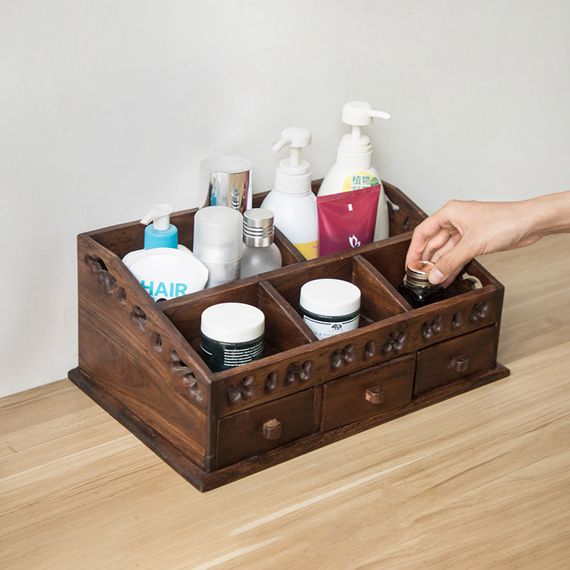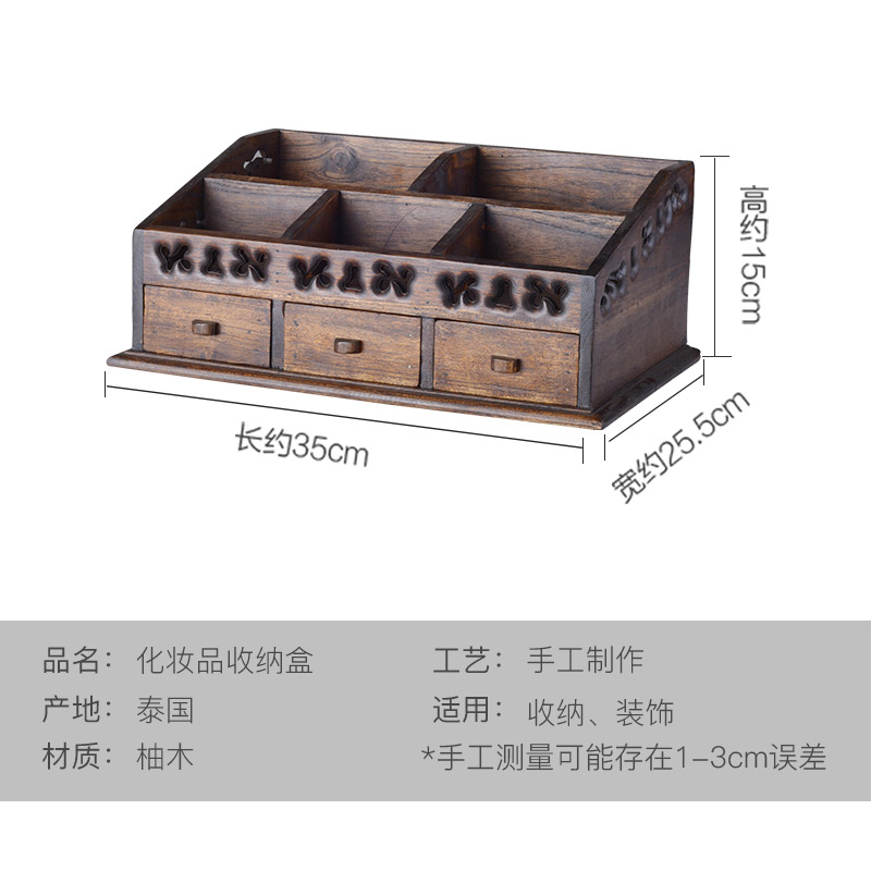 Thai solid wood drawer skincare cosmetic containing box makeup table retro wooden table top dressing case finishing box