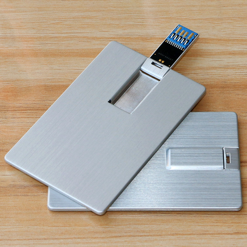 64G high-speed large-capacity corporate advertising gift custom lettering metal business card type U disk Metal card type pen drive USB3 064g Wedding photo studio personalized business gift color printing company LOG