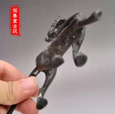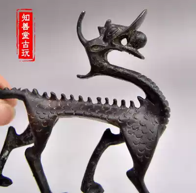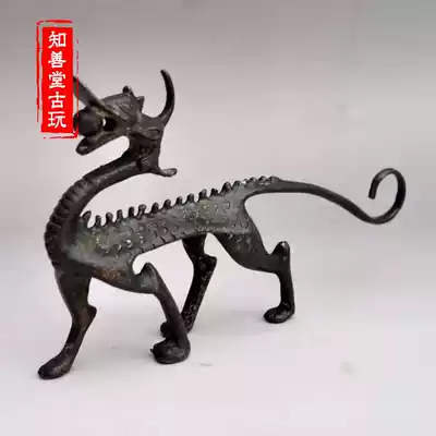 Antique miscellaneous collection Pure copper pen holder Brass single dragon play ball pen holder Pen holder Pen holder Brush pen Calligraphy