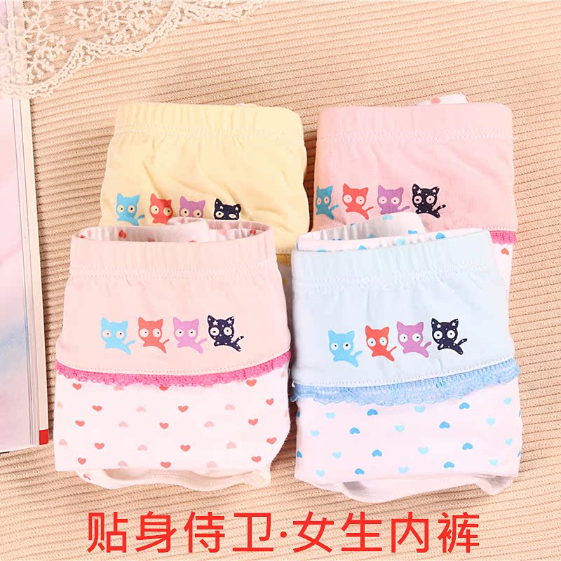 Close bodyguard children's small cat cartoon little underpants little girl child clothes pants pure cotton comfort triangle briefs