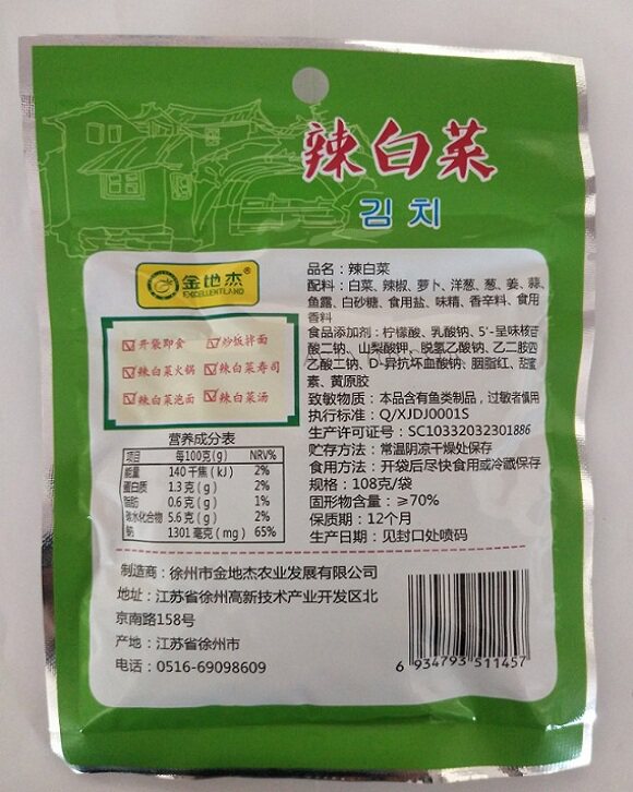 Golden ground Jewy cabbage 108g ready-to-eat cabbage sauerkraut sauce sushi fried rice mixed pasta hot pot material ingredients