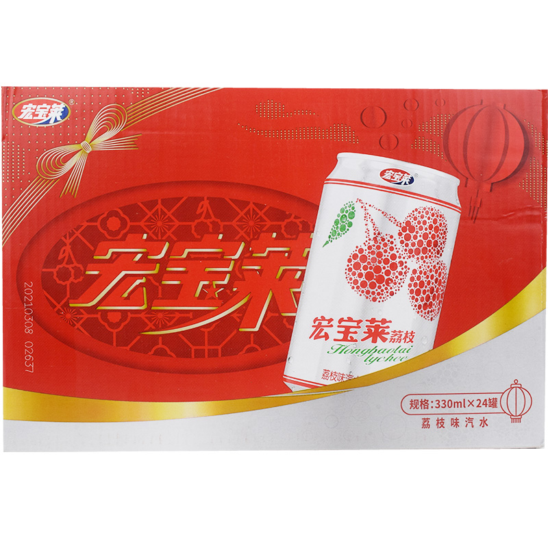 Hongbaolai soda 330ml*24 cans Hongbaolai lychee flavored carbonated drink Siping specialty summer drink