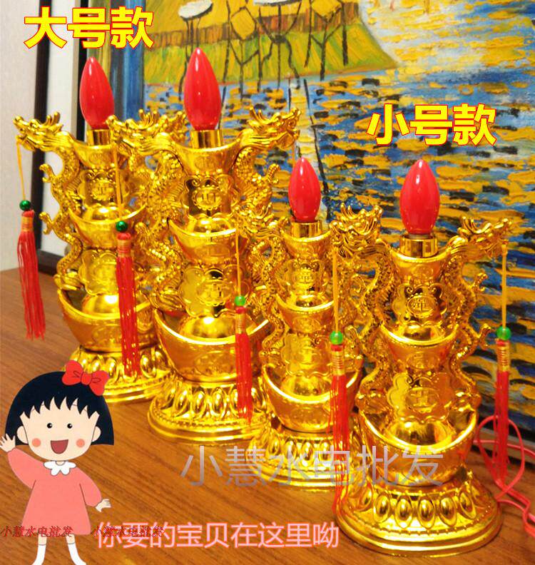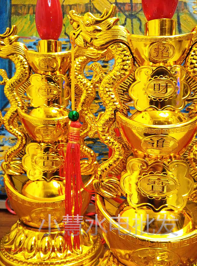 New Year large ingot carrying double dragon rich and rich god of wealth for the Buddha lamp Candlestick Changming Guanyin Buddha headlight Sacrificial lamp