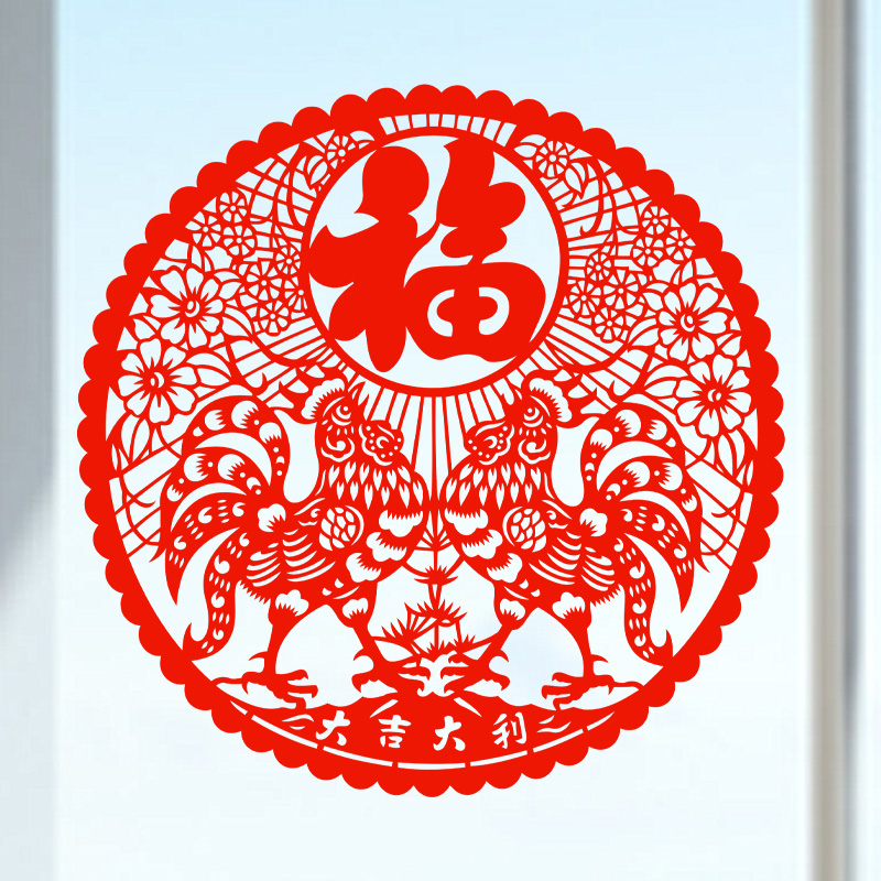 Raw Xiao Chicken Cut Paper Fu Calligraphy Window Flower Static Sticker Spring Festival Festive Decoration Glass Window Animal Chicken Patch Painting Waterproof-Taobao