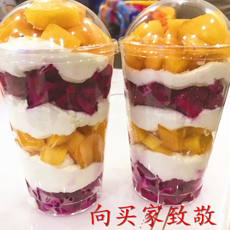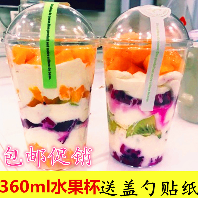 360ml disposable fruit cup with lid cream klayer cup air cup cake cup hard plastic cup with spoon 20 cover