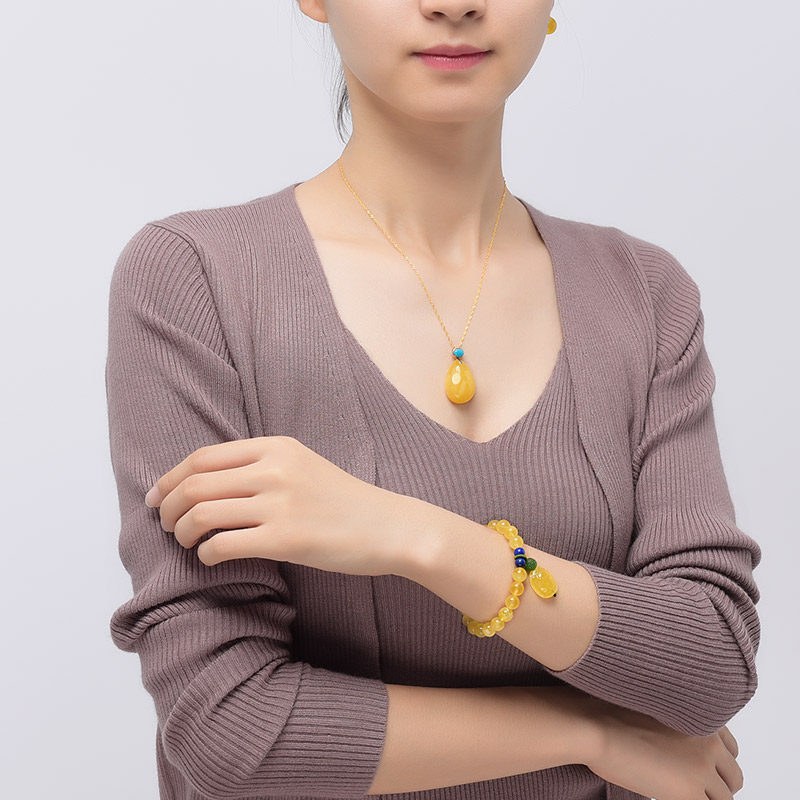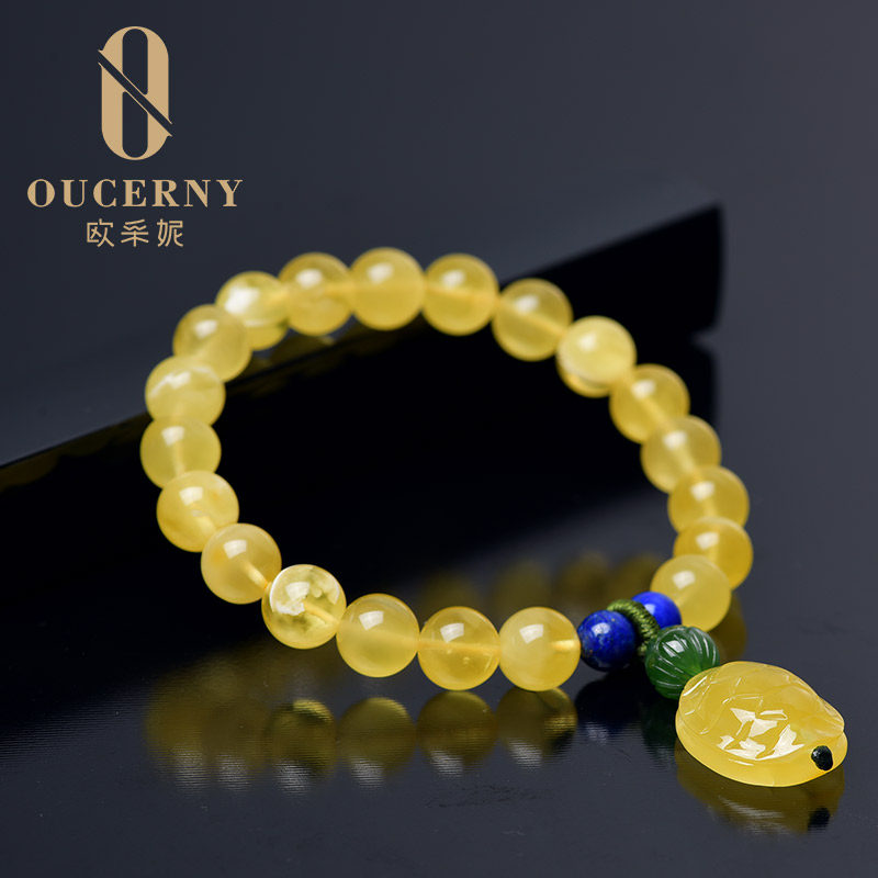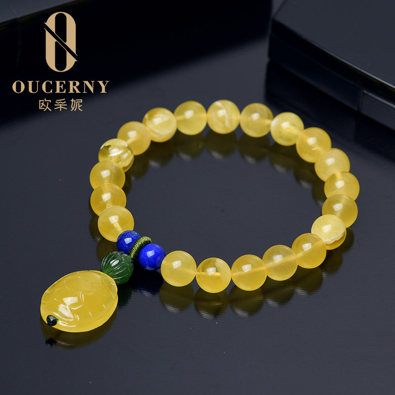 Ozany natural amber bracelet with Baltic gold wrung honey shell bead beeswax bracelet for women