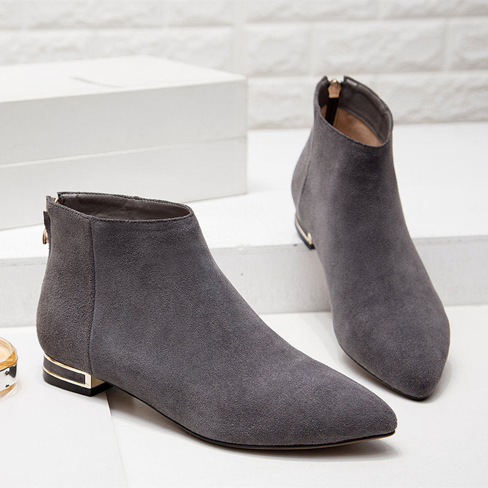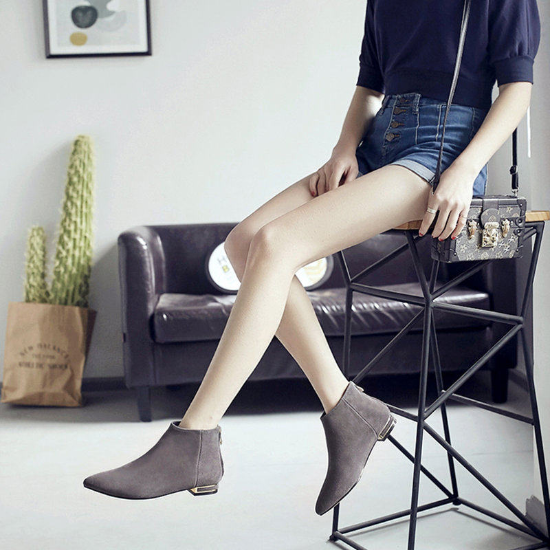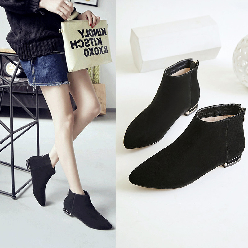 Small boots female autumn new tip leather naked boots flat and ankle boots Martin boots worn skinned short-sized female boots