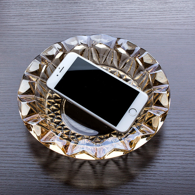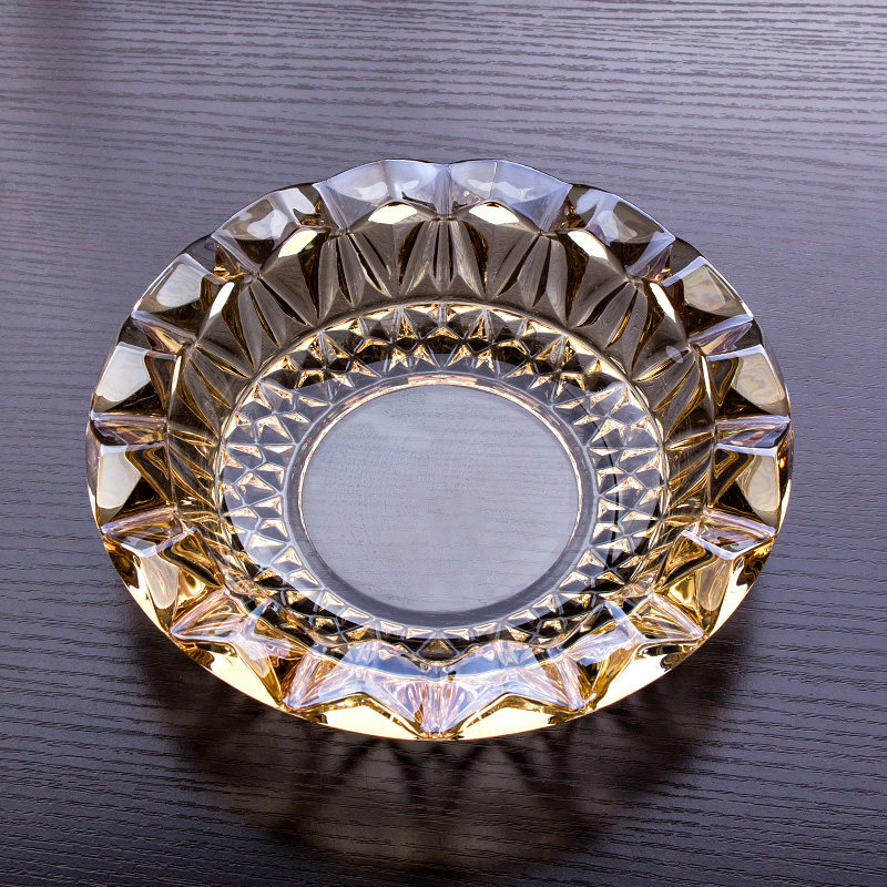 Ouwei large crystal glass ashtray electroplating golden ashtray large ashtray living room office ashtray