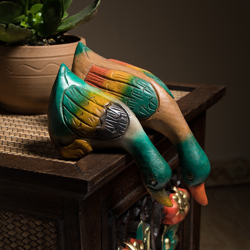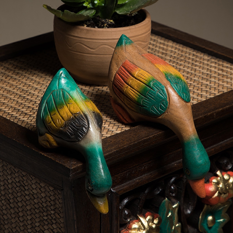 Iserie Thai Wooden Craft Gift Pendulum accessories Drink Ducks Pendulum parlor Courtyard Fish Pool Adornment Small Furnishing