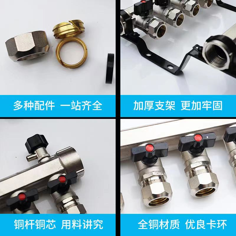 Shanghai Rifeng large-flow floor heating water separator floor heating household water separator all copper integrated floor heating pipe set water separator