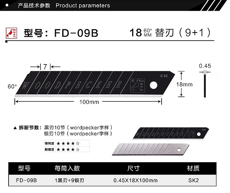 Woodpecker blade FD-09B wallpaper knife wallpaper knife cut paper cut beauty work knife sheet 18mm wide