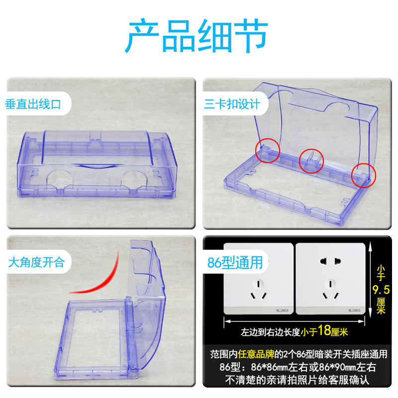 The kitchen blue transparent double 86 switch socket protective cover cover cover cover two - digit splash box