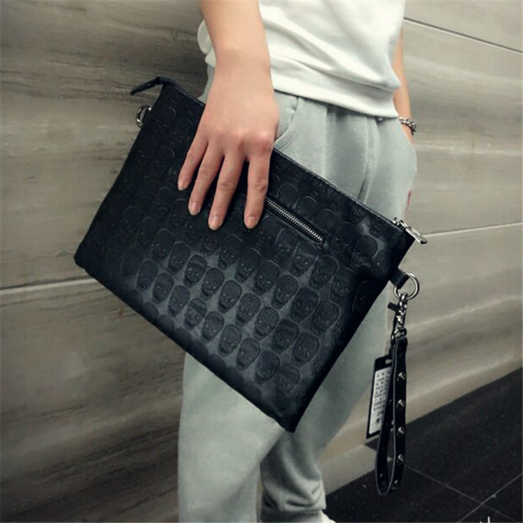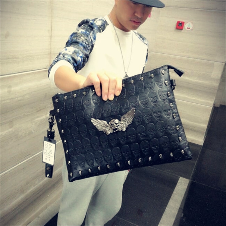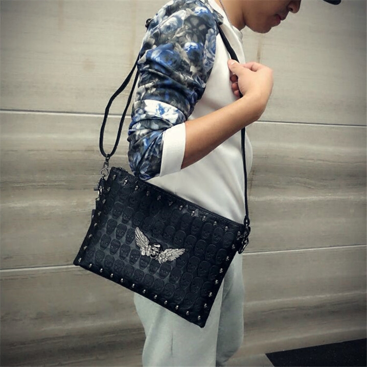 Hand Grab Bag Male Korean version Trend Skull skull head Rivet Hands Grab Bag Casual Single Shoulder Inclined Satchel Handbag handbag File Package