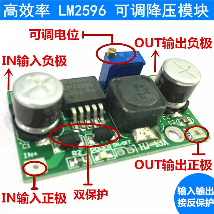 LM2596 DC-DC adjustable step-down power supply plate 24V to 12V 5V 3V3A voltage stabilized bare plate module
