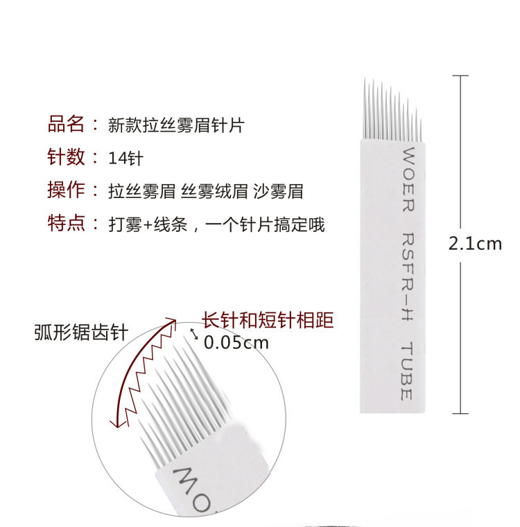 Semi-permanent embroidery handmade high and low arc 14-pin sand fog eyebrow line eyebrow fogging tooth needle piece brushed fog eyebrow arc