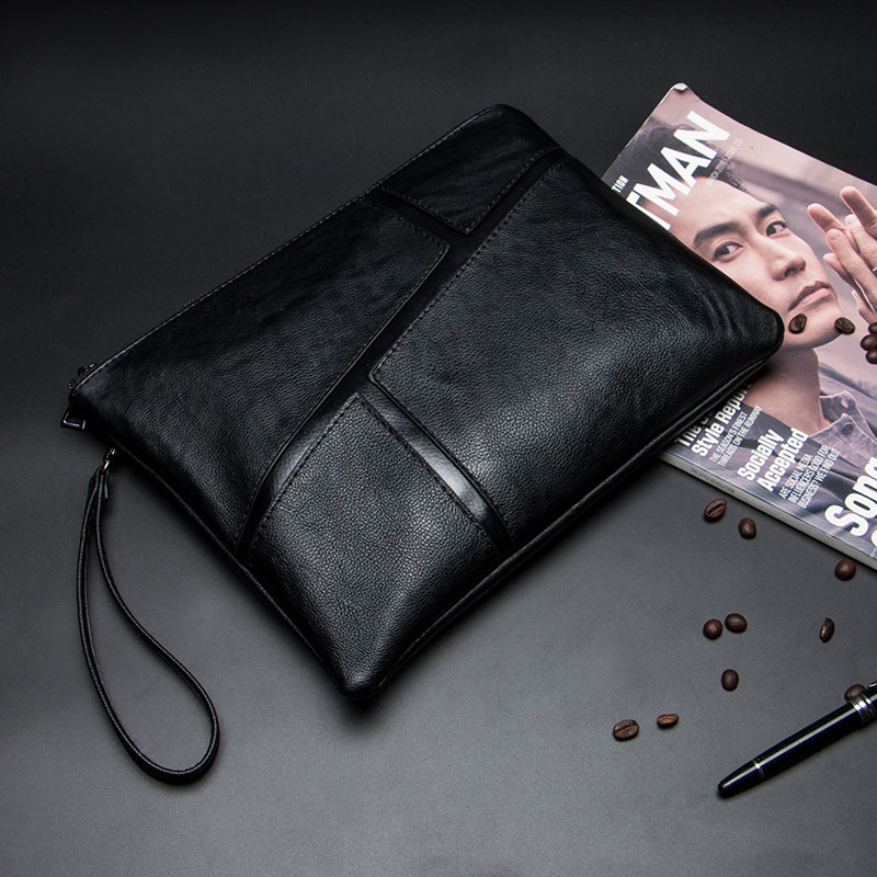 Men's clutch bag Korean version of the tide of social youth fashion hand grab bag soft leather casual hand bag clip bag hand bag