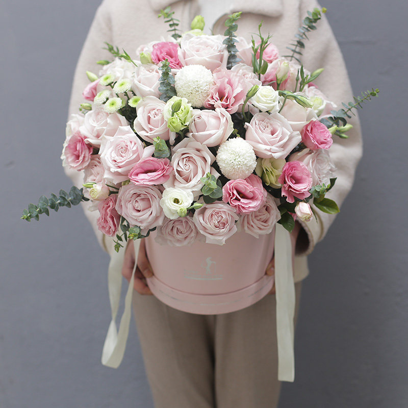 33 Red Roses Red Kang mixed and mixed hug bucket 33 Red Roses Ping pong chrysanthemum mixed and mixed flower basket 33 Red Roses Eucalyptus mixed and mixed flower basket 33 red Roses portable flower basket 52 super red Rose hug