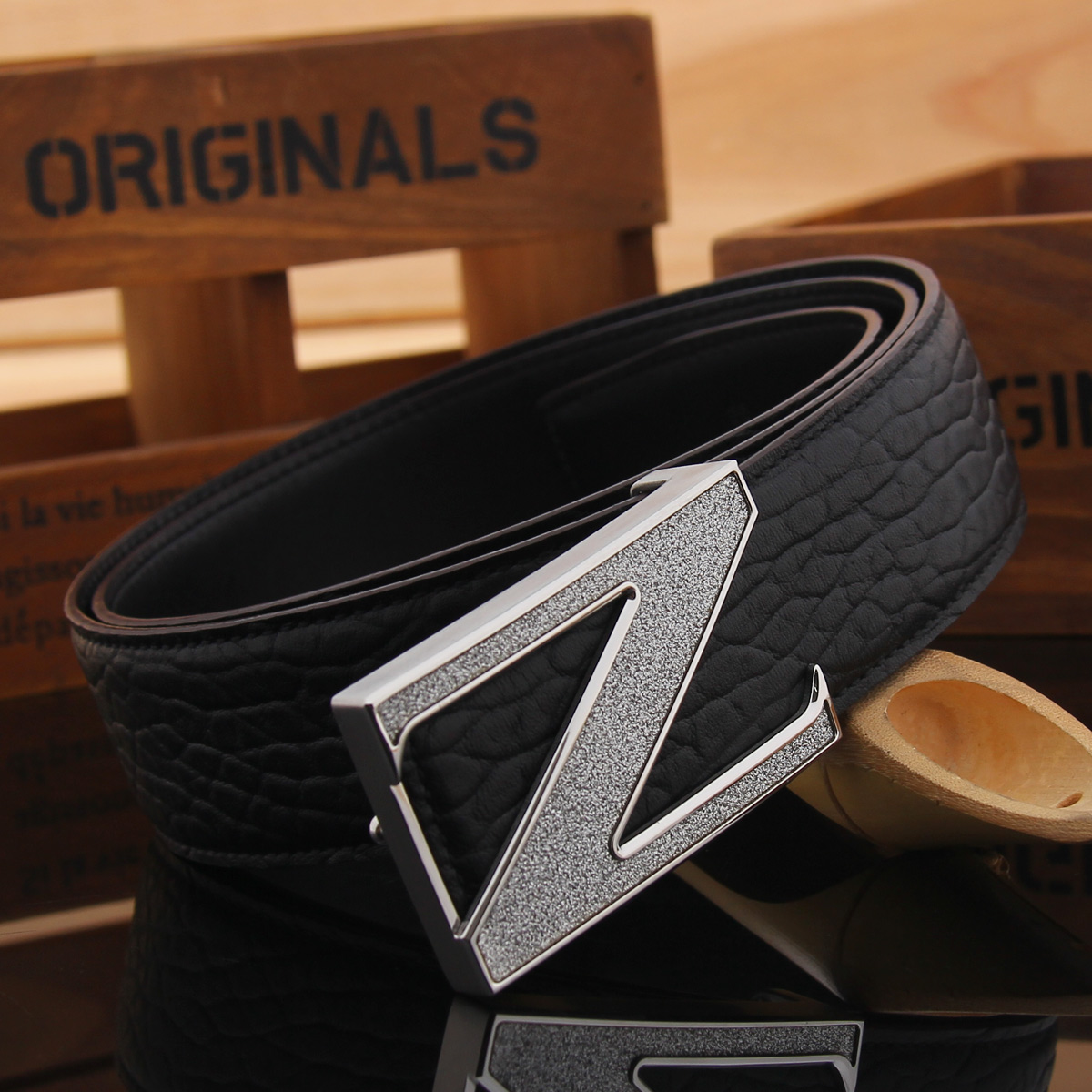 Ai Lanbao business fashion diamond-encrusted stainless steel Z buckle men's belt first layer pure cowhide belt youth and middle-aged Korean version