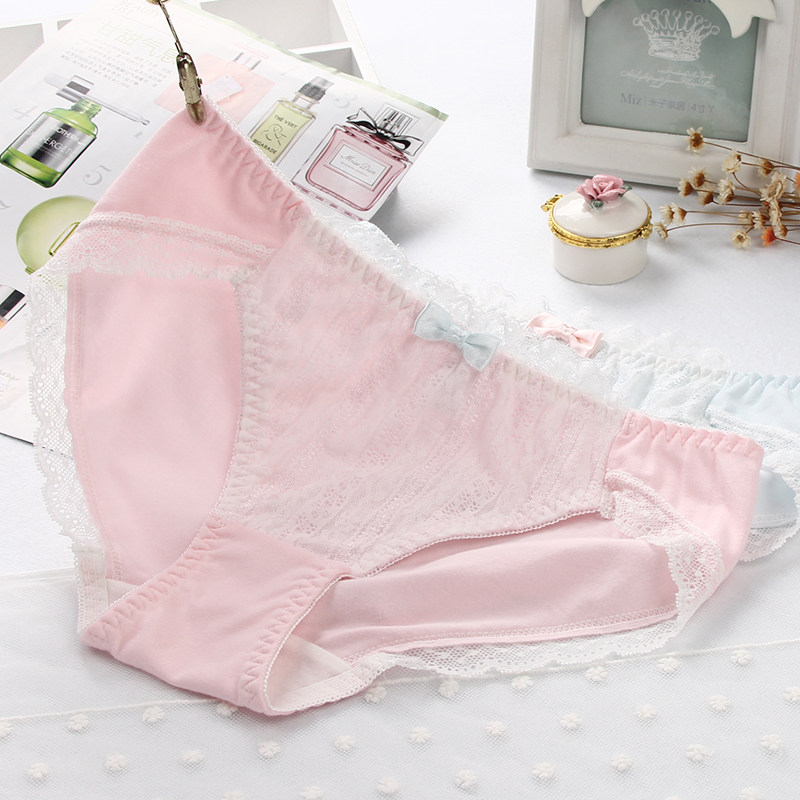 Japanese sexy cotton ladies panties bow low waist seamless cotton briefs lace elegant princess